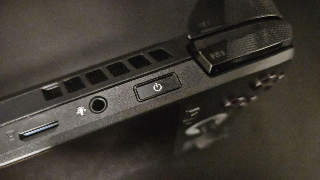 僕がポータブルゲーミングPCに目を付けたポイントの一つなのですが、本体側面に電源ボタンがあるため外出先だろうが屋内だろうが簡単に電源ONにすることができますし、もちろん小型なのでデスク上に設置してもスペースを取りません。