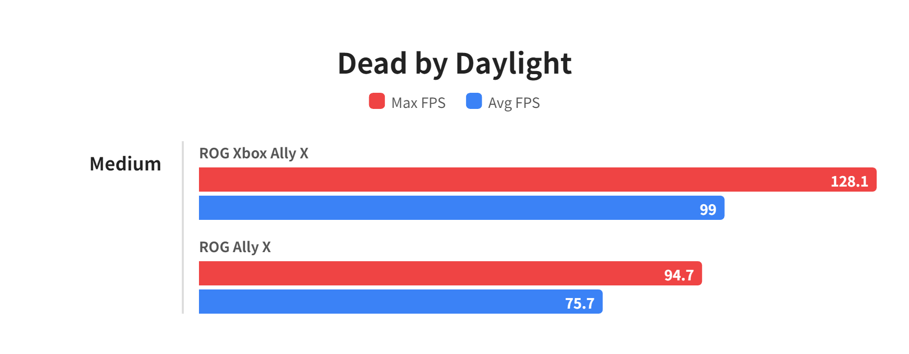 Dead by Daylightでは平均フレームレートが約24fps向上し、ついに100fpsの大台に迫る結果となりました。